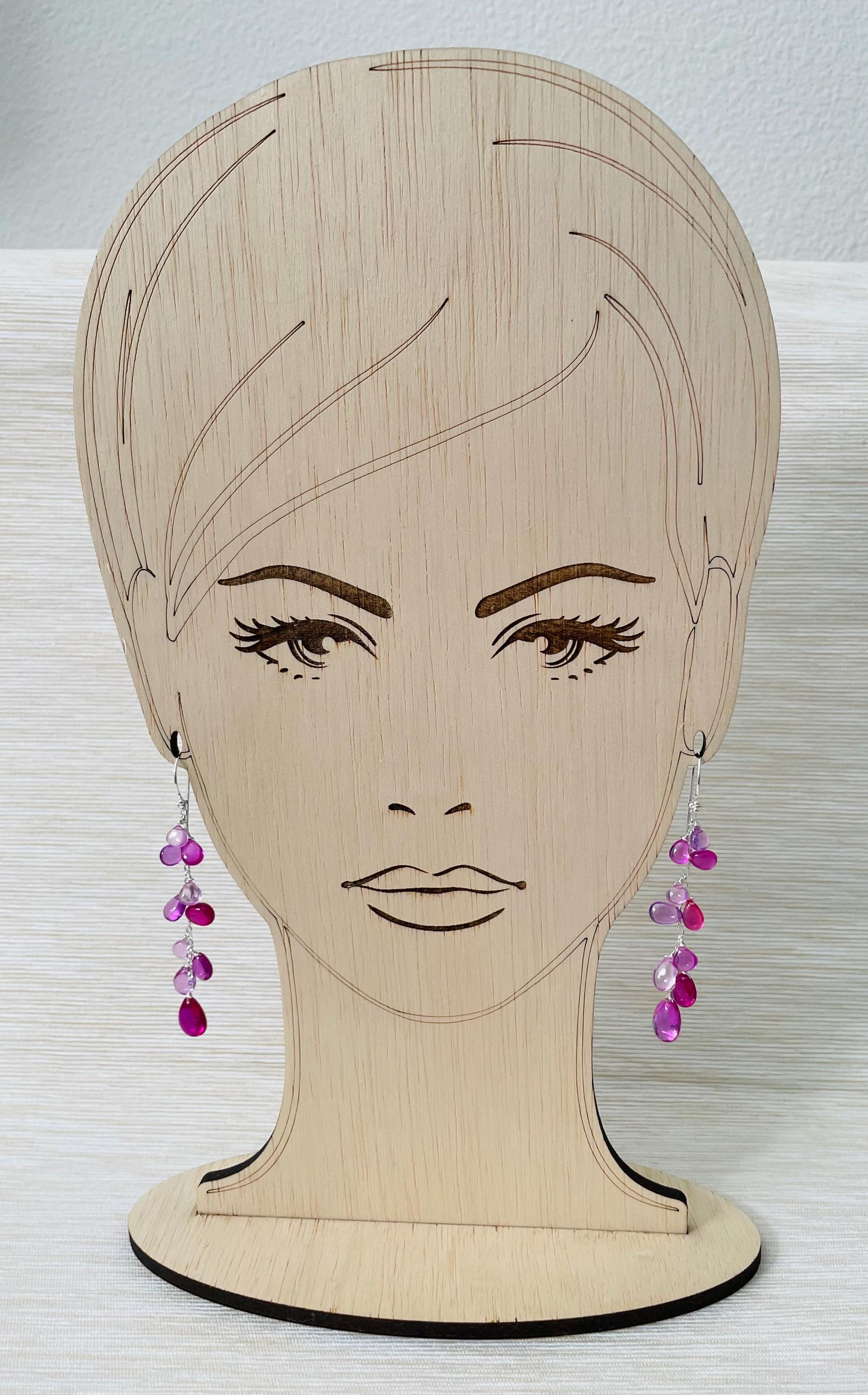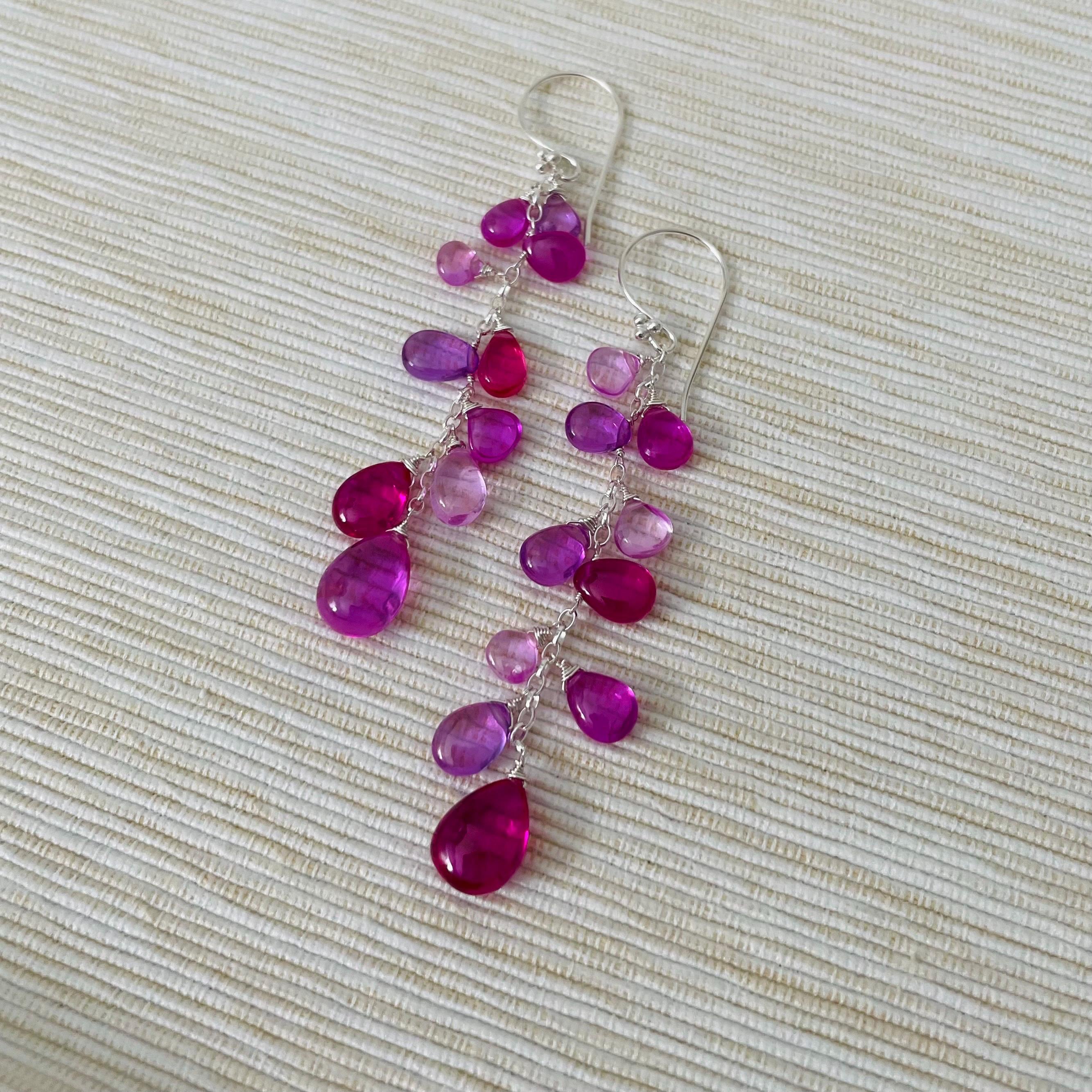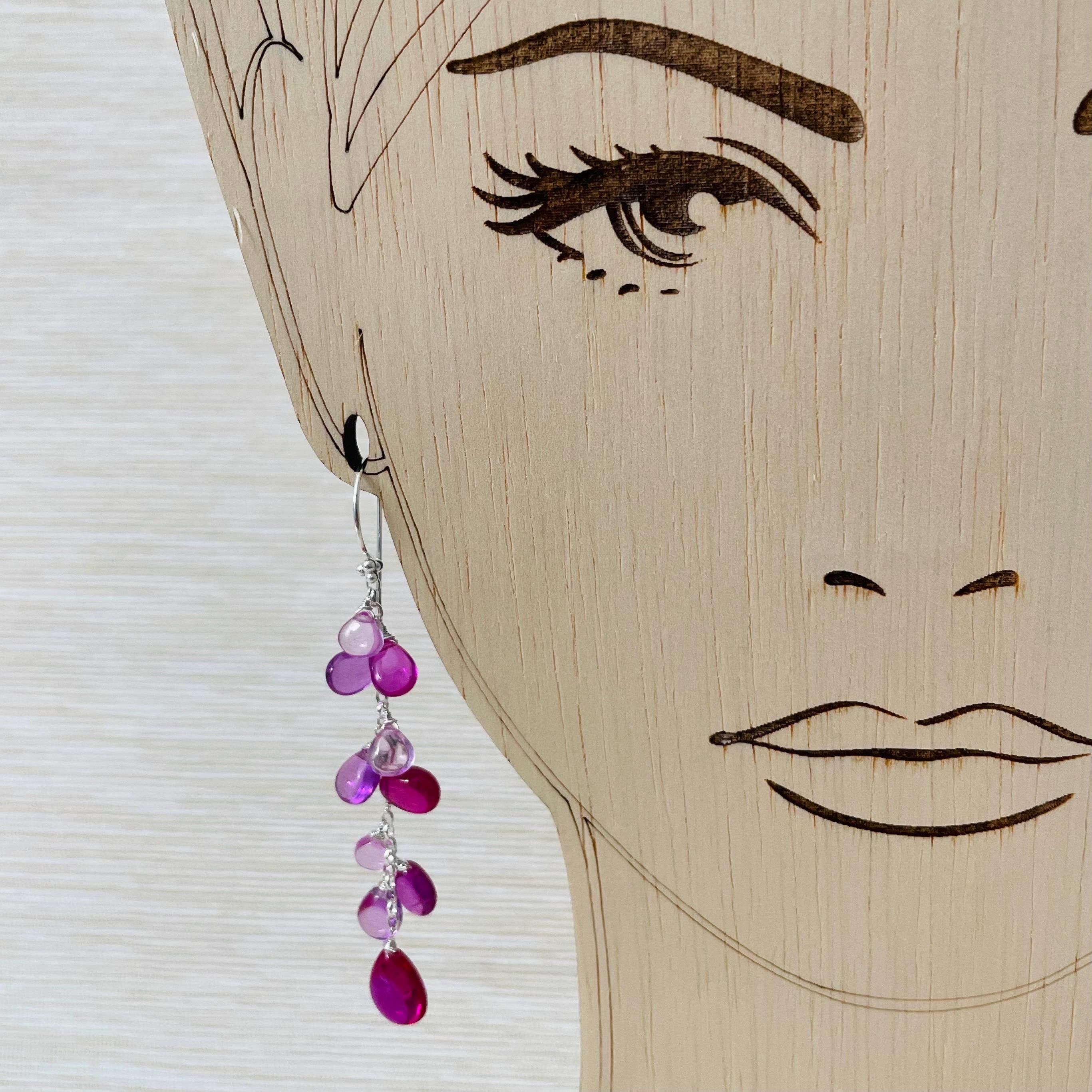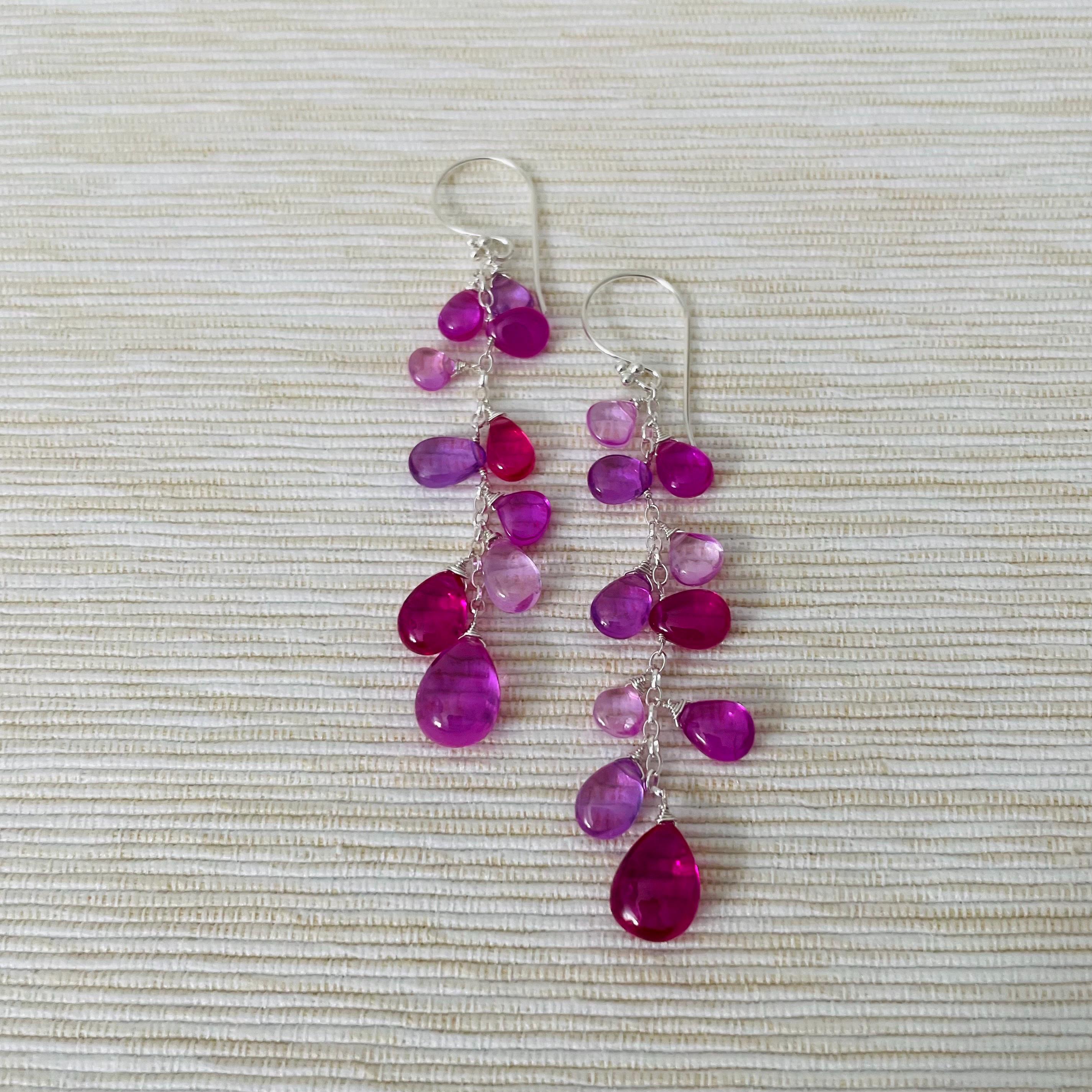 This set of gemstone is nearly perfect in color and clarity. Only one gemstone at the top has an occlusion. Because of the rarity of magenta sapphires, I included this in these earrings. (See the last image for details.)